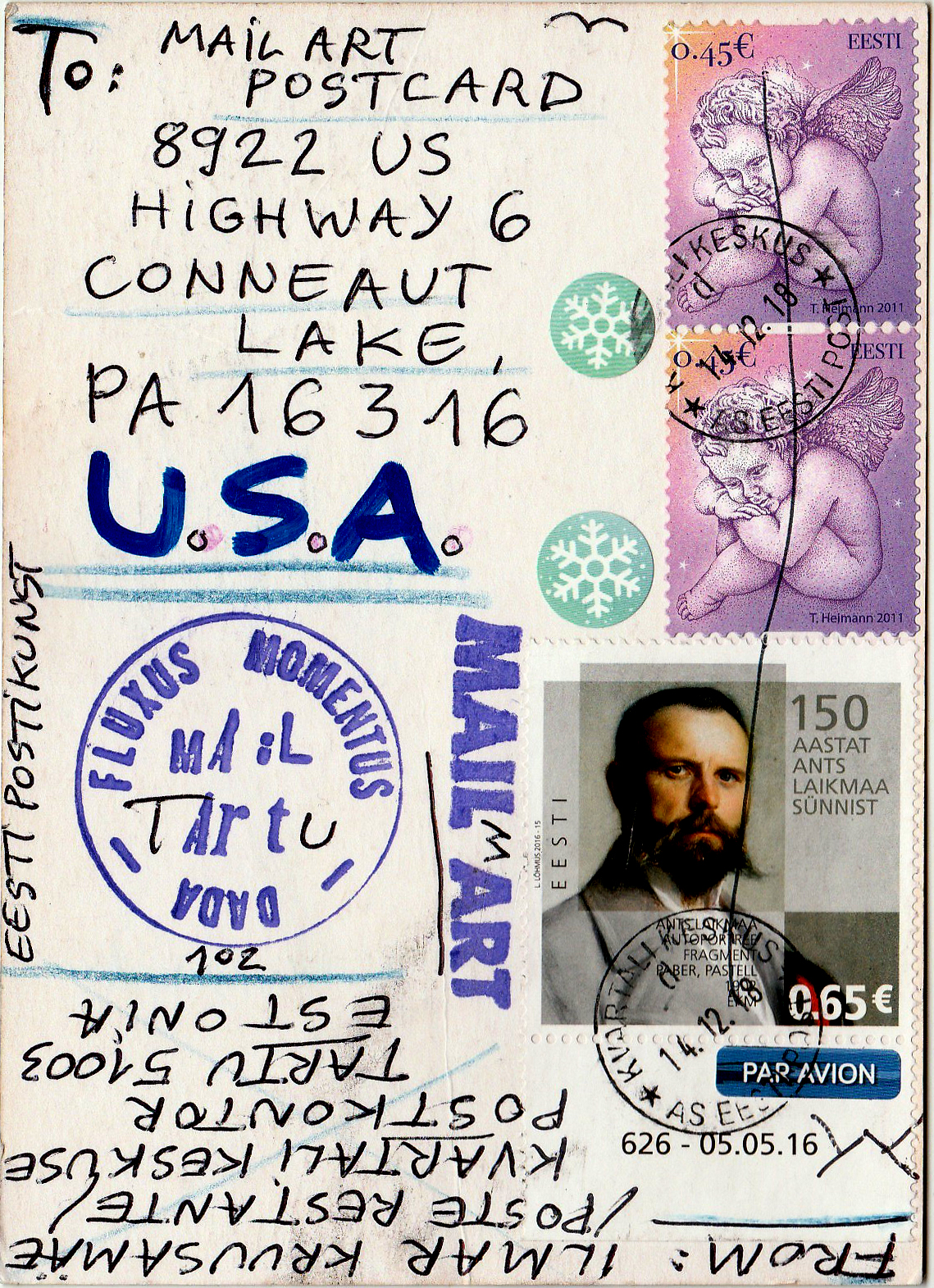 This is a curated exhibit of mail art postcards. All media are welcome. Not all cards submitted will be posted. Artists may send their pieces by postal mail to this address: